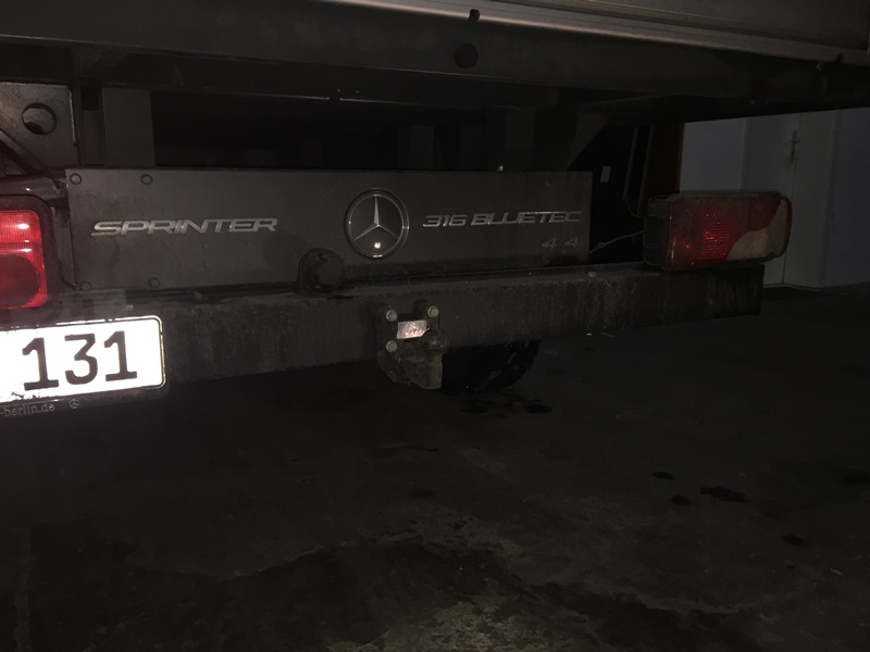 Interessant wird die Sache auch noch, weil unser Sprinter ein breites Trittbrett mit integrierten Sensoren hinten hat. Da wissen wir noch nicht 100%-ig, ob es entfernt werden muss.