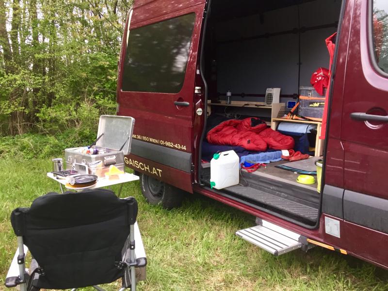 Die ersten beiden Nächte auswärts. Saukalt und nur Regen. Aber gut geschlafen. Die Heizung ist aber nur ein Provisorium.