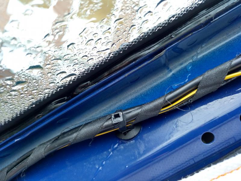 Während einer Kurvenfahrt ist mir dann ein Schwall Wasser aus dem von Dir gezeigten Loch entgegen gekommen, kurve andersherum gefahren, auch da. Oha, was für ein sch...! Da die Scheibe beim Vorbesitzer getauscht wurde und noch Garantie auf dem Wechsel war, bin ich ebenfalls zur Werkstatt. Tatsächlich war die Scheibe ein einer Stelle undicht, jedoch tropfte es immernoch fleißig bei Regen hinein. Wieder in der Werkstatt gewesen, die Scheibe wurde noch einmal gründlich geprüft und extra abgedichtet, immernoch Wassereinbruch! Dann habe ich mich selber auf die Suche gemacht.