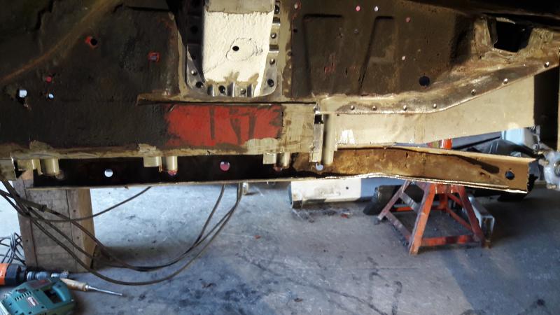 ... wenn Du Dir schon so viel Mühe mit der VA machst( Überholung, Abdichtung, Farbe etc), kleiner Tip, bohre Wasserablauflöcher in den Achsträger :wink: :!: Der Oberaigner hat keinen Wasserablauf wie die 2wd Serie, wurde anscheinend vergessen. Im Längstträger steht so 4-5mm Wasser, rinnt nur über die Karosserie Richt/Vermessungsbohrungen vorne( Nähe Wagenheberaufnahme)ab, diese sind nach innen gebördelt. Eine Restmenge verbleibt immer in den beiden Trägern und durch Kapilarwirkung zieht es dieses Medium in die Aufdoppelungen und Verstärkungen... den Rest erzählen folgende Bilder. Die Ablaufbohrung ist die dezentrierte Bohrung, liegt auf der Querebene der Anschlagpuffer. 8-10mm kannste bohren, die Bohrung im Rahmen hat 16mm. Wenn die Antriebswelle demontiert ist kommt man mit einer Winkelbohrmaschine auch hin, wenn der Achsschenkel demontiert ist geht die normale Hand-Bohrmaschine. Gruss RED-RUBIN