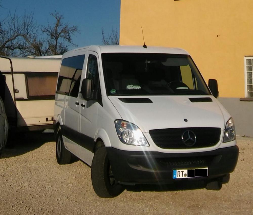 Ich bin seit Oktober stolzer Besitzer eines MB Sprinter 216 Bj. 12/2012 in der Kurz-/-Flach-Version in Polarweiß. Der Sprinter ist aufgelastet und rundumverglast und hat eine LKW-Zulassung. Außerdem hat er sowohl eine Klimaanlage als auch eine Standheizung mit Fernbedienung.