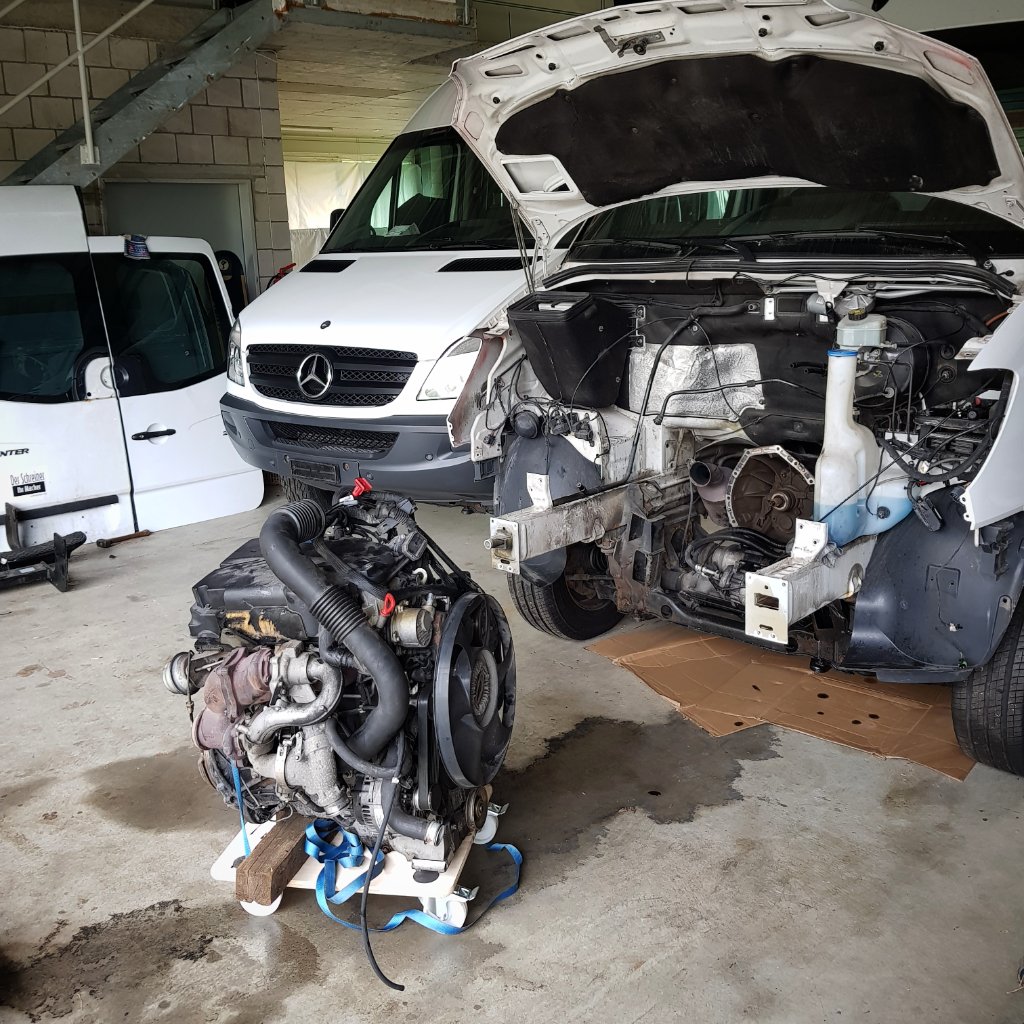 Hallo miteinander . . bin neu hier . . aber nicht unbedingt neu beim Sprinter . . momentan stehen bei mir 3 Stück in der Halle . . 1x 12er 316CDI 4x4, 1x 218CDI . . und mein neustes Projekt ist ein 08er 315CDI 4x4 . . mit Motorschaden . . .