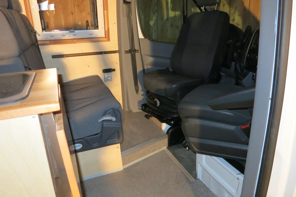 eine mögliche Lösung ist ein kleines Podest zwischen Fahrersitz und der Sitzbank: