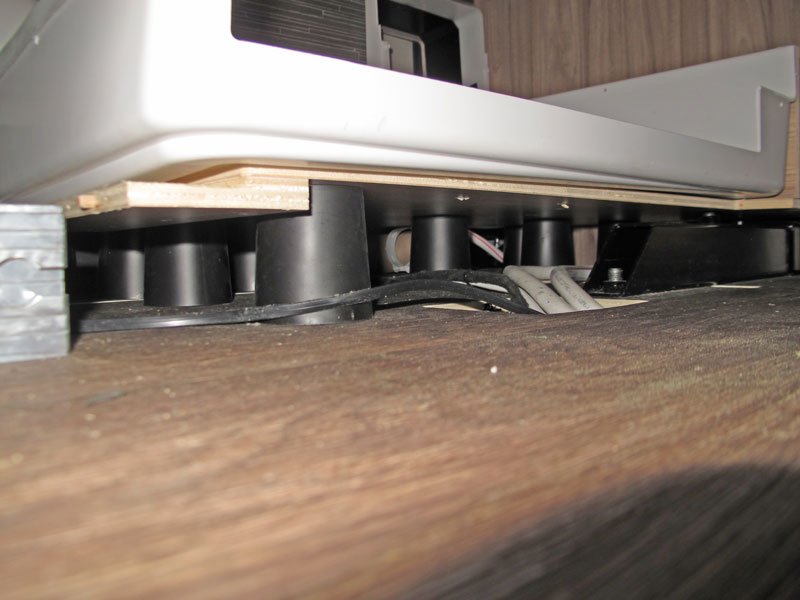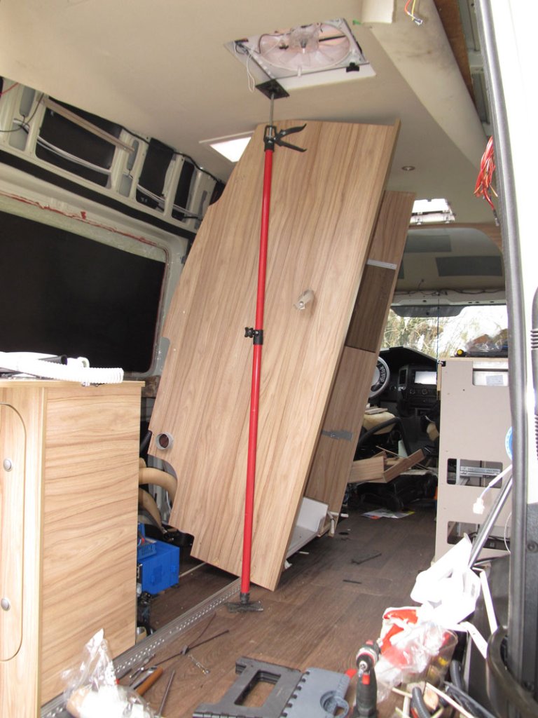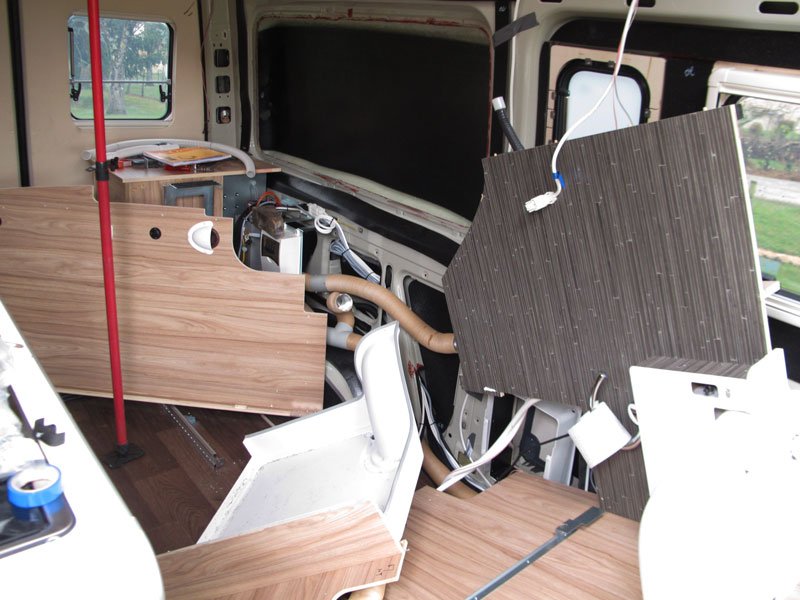 Stimmt, ich habe das Bettbrett durch getrennt. Ich wolte nicht die Gasdichtung der Gaskaste und die Gaskupplungen verstoren. Deswegens habe ich auch die Kuche nicht ausgeraumt obwohl es vieles zu isolieren gibt ins untere Teil der Schiebetur.