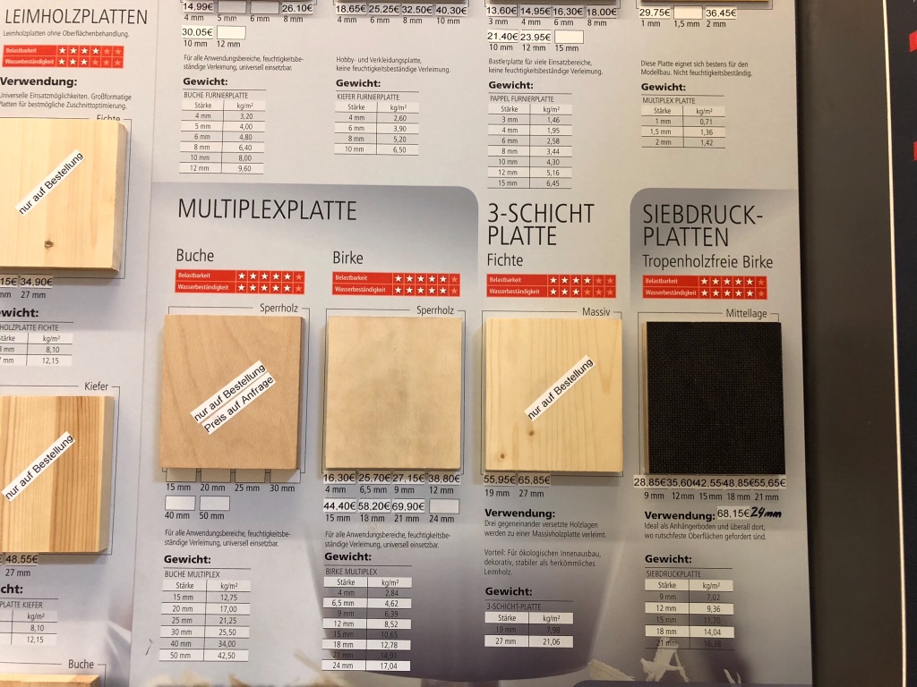 Zuletzt die Siebdruckplatte, genügt eine 12mm Platte oder sollten wir auf was Dickeres gehen?