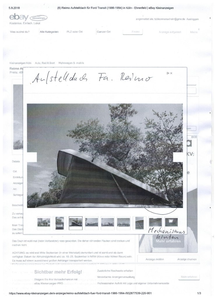 ich war mal lose in einer TÜV Station anfragen, um zu Erfahren was Sie so an Unterlagen haben möchten. Der Prüfingenieur (PI) hat sich sogar etwas Zeit genommen - Aufstelldächer gehören nicht zu seinen Kompetenzschwerpunkt - und mir erklärt wo das Problem liegt. Da die original Dachstruktur erhalten bleibt, ich habe in der Skizze den Bereich markiert in dem ich die Einstiegsluke schneiden möchte, wäre das kein Problem.