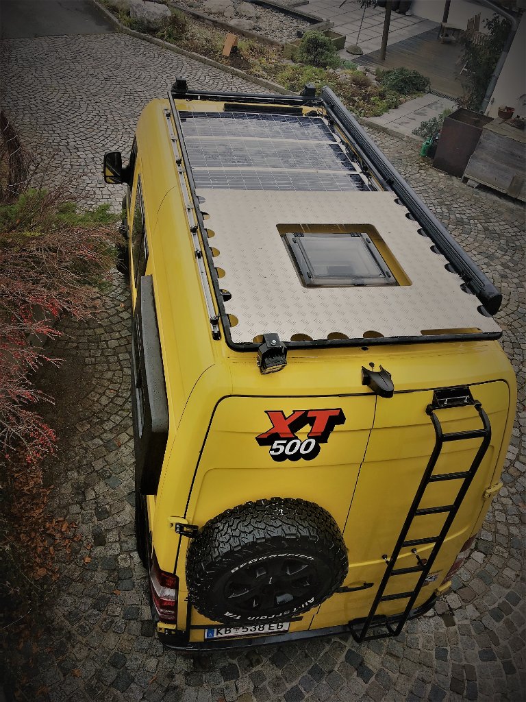 Ziel war es meinen 2009er 2x4 schlechtwegetauglich zu machen. Vom T2 California her kommend, (der sowohl im Norden, am Balkan und in Afrika 20 Jahre lang keine schlechte figur gemacht hat) wollte ich den Sprinter so herrichten, dass er auch auf Pisten, schlechten Wegen und Abends bei der Platzsuche kein Kopfweh verursacht. Mit dem T2 hatte ich die Erfahrung gemacht, dass hohe Bodenfreiheit und gute Reifen die halbe Maut sind und daher ging es auch hier in diese Richtung.