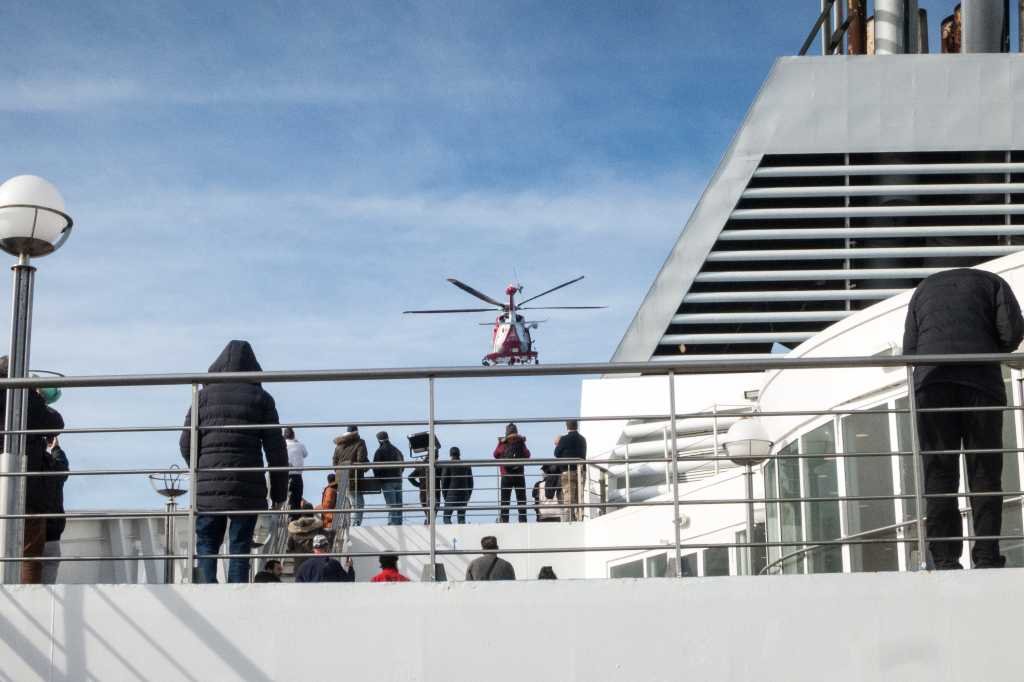 Nachdem der Arzt auf die Fähre abgeseilt war (landen konnte der Helikopter auf der Fähre nicht) flog der Helikopter ca. 45 Minuten neben der Fähre her. Dann flog er wieder über die Fähre und holte den Arzt und die Frau ab. Da ich es nicht mag, solche Ereignisse an vorderster Front zu beobachten, kann ich auch nicht sagen, ob die Frau mittlerweile entbunden hatte.