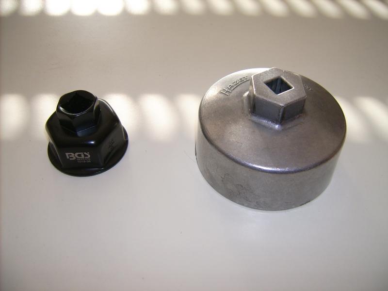Habe mir die 74er Nuss besorgt, da ich die Kappe mit einer großen Rohrzange und auch Ölfilterschlüssel (mit Textilband) nicht aufbekommen habe bzw. eigentlich nicht gescheit hingekommen bin... mit dem 74er Ölkappenschlüssel ein Kinderspiel. Nur langsam wird die Werkstatt mit Werkzeug zugemüllt
