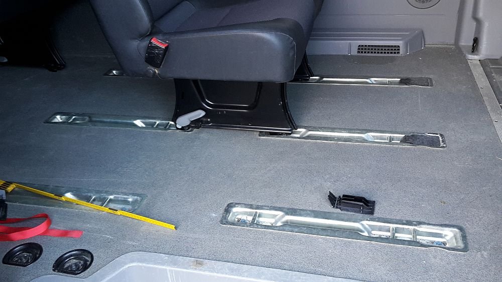 Diesen Gedanken hatte ich auch schon. Wäre dann aber eine dauerhafte Veränderung. Ich möchte den Bus ja auch mal wieder mit der 3. Sitzreihe benutzen.cappulino hat geschrieben: 28 Mär 2019 08:02 Schraub die vordere Schiene raus, dann mit dem vorderen Loch in der freigewordene hintere Befestigungsmutter festschrauben. Das hintere Loch der Sitzschiene ergibt sich aus dem vorderen Loch der 3.Reihe evtl nur in der Sitzschiene neu bohren. Bei Rahloff. com neue Bodenplatte ohne Ausschnitte evtl mit Trittstufenüberdeckung besorgt oder selber im Baumarkt geholt, Ausschnitte gemacht, fertig weil Originalbefestigung nur anders genutzt.