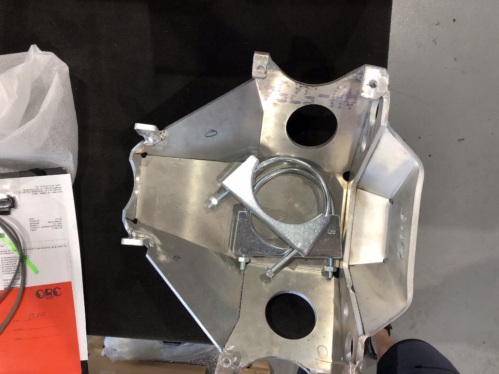 Der Schutz von ORC ist mit seinen 4kg schon deutlich leichter, passt aber auch nicht. Genauere Infos habe ich von ORC nicht bekommen, aber auf den Bildern sieht man, dass es nicht funktioniert bzw. das er auch am Aktor anstehen wird. ORC gibt keine Garantie ob es passt. Außerdem hat der Schutz unten eine große Bohrung – da wo ich keine haben will wenn ich über einen Felsen fahre, einem Forums-Mitglied wurde das auch schon zum Verhängnis.