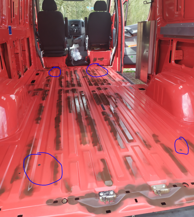 Im Bodenblech meines Sprinter w906 von 2014 befinden sich in den Vertiefungen des Blechs jeweils vorne und hinten Löcher mit Gewinde (siehe Foto). Kann mir jemand sagen ob das normal ist oder ggf. ein Hinweis auf Bodengruppe Kombi. Laut FIN Auskunft ist diese nicht vorhanden, allerdings machen mich die Löcher stutzig. Hat jemand von euch diese Gewinde ebenfalls oder weiß wofür sie sind?