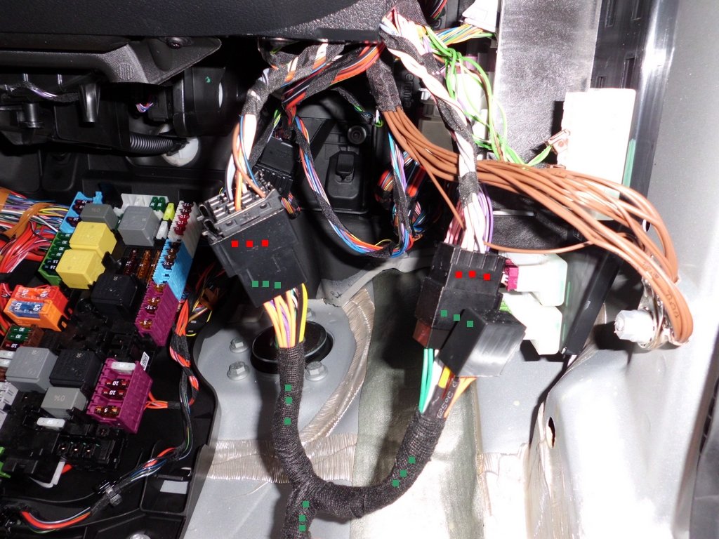 Bild vom Kabelbaum des Axton auch noch mit dran...die roten Punkte im Bild sind der original Kabelbaum bzw. die DIN-Stecker/Buchse, die grünen Punkte der Axton Kabelbaum.