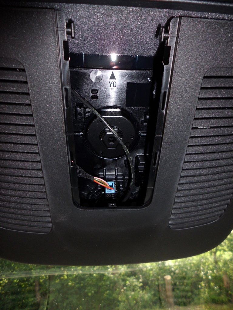 Dann noch ein Bild von dem großen Verhau in der Windschutzscheibe wenn man die kleine Plastikkappe öffnet. Totwinkel, Abstandstempomat, Regensensor hab ich drin.