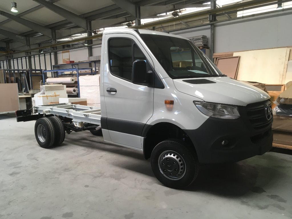 das Fahrgestell ist nun beim Aufbauer eingetroffen.
