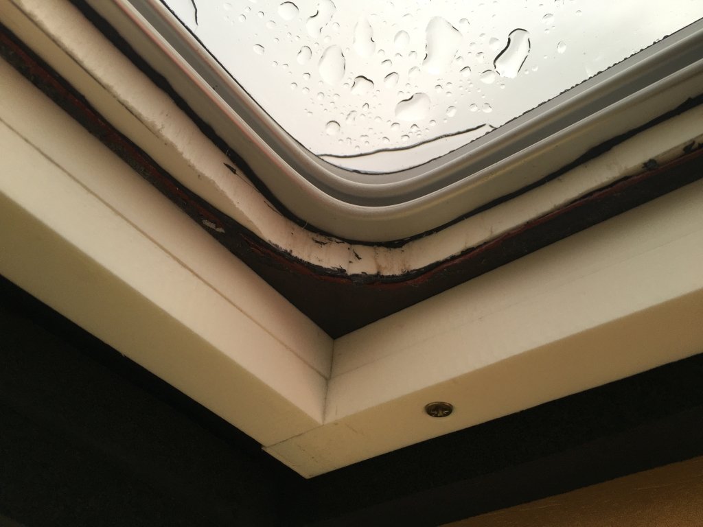 Die Luken wurden mit rostfreien Schrauben durch das Dach (und durch den Zwischenrahmen) befestigt. Innen ist ein weiterer Kunststoffrahmen mit dem die Dachluken verschraubt wurden. Zur Abdichtung zwischen "Dach-Zwischenrahmen-Dachluke" und für jeden Schraubenkopf habe ich Dekaseal 8936 verwendet.