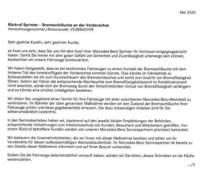Re: Rückruf Sprinter VS30 Bremschläuche Vorderachse