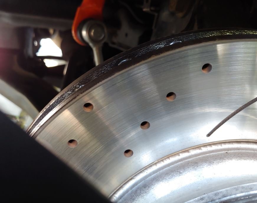 Bei dieser Gelegenheit habe ich mir ein kleines Upgrade gegönnt und gelochte / genutete Bremsscheiben eingesetzt.