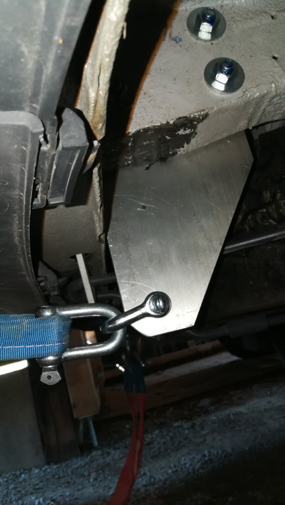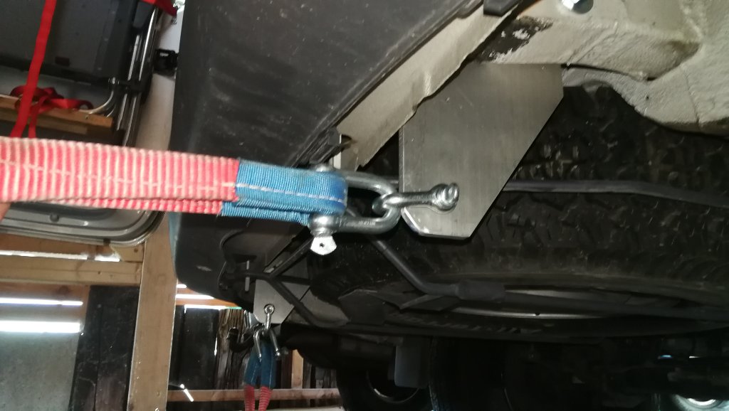 Die Blechelchen sind hochfestes Alu in 12 mm Stärke. Daher trau ich denen einiges zu. 1000 mal besser ist die AHK sicher nicht, höchstens 5 x. Ich habe einen kurzen Gurt der an beiden Ösen eingehängt wird, da kommt dann der lange dran, da sollte schon was gehen.