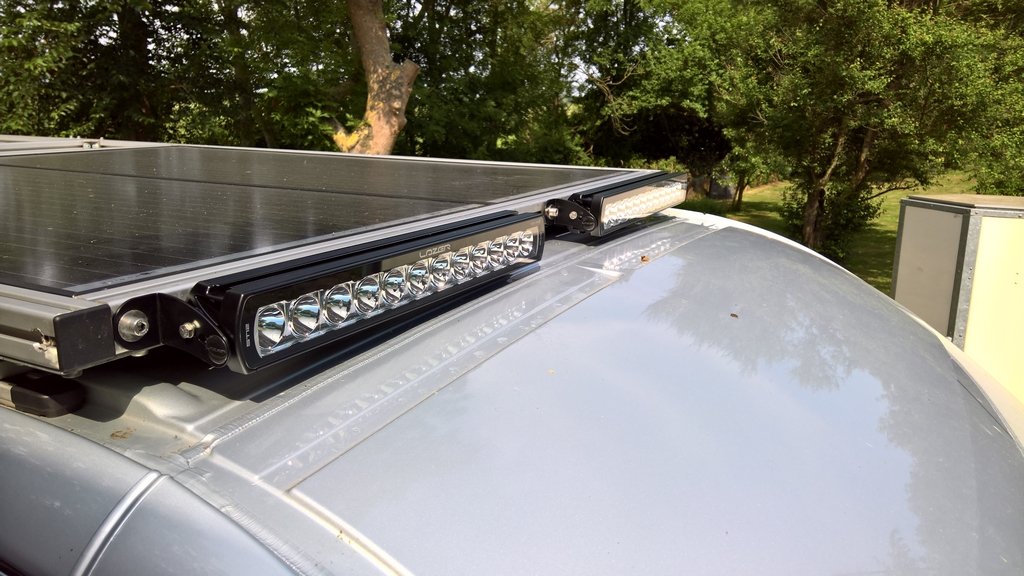 Die Dinger hängen an der Bordbatterie, damit ich sie notfalls auch mal länger ohne Motor betreiben kann. Im Armaturenbrett habe ich einen Schalter, wenn der in Mittelstellung ist sind die Funzeln komplett aus. Ist er nach oben gekippt gehen die Funzeln zusammen mit dem normalen Fernlicht an (per Stromdieb am rechten Fernscheinwerfer abgegriffen). Drücke ich den Schalter nach unten kann ich die LEDs damit manuell einschalten. Jo, macht halt "etwas hell"