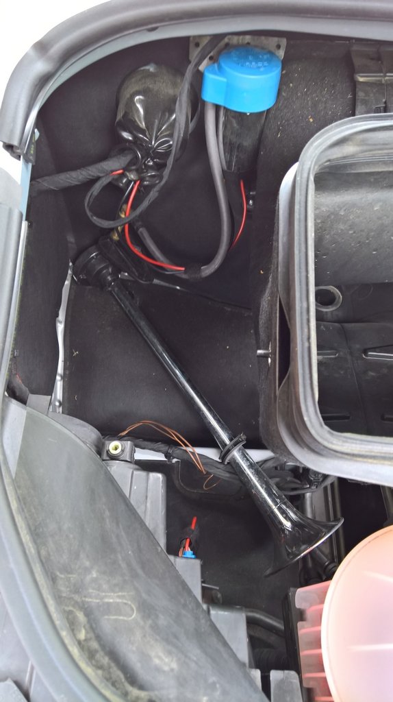 Einziger Nachteil: Der Kompressor erzeugt kernig Vibrationen, den müsste ich noch mal an eine entkoppelte Halterung hängen. Wenn die Fenster zu sind und ich hupe klingt das im Innenraum eher wie ein Schwingschleifer durch die VibrationenAußen hört man davon kaum was bzw. geht das im Horngetröte unter. Nuja, Luxusprobleme...