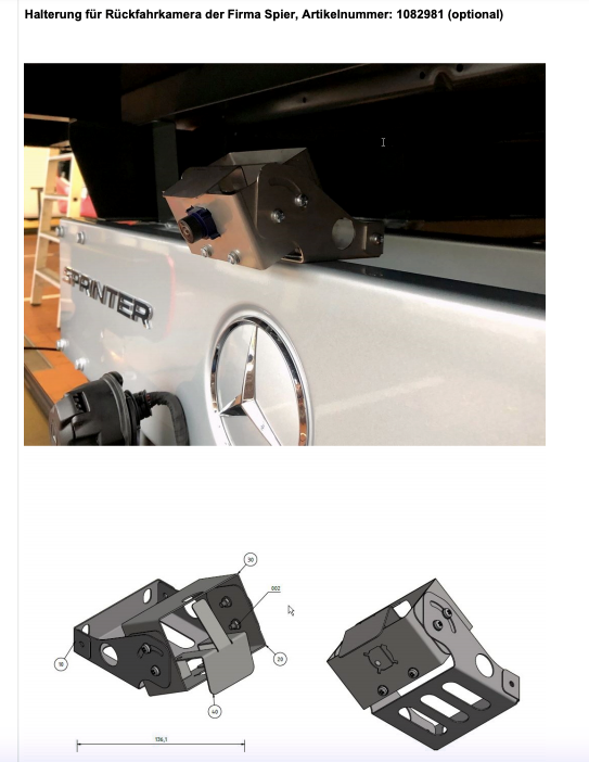 von der Firma Spier gibt es eine Halterung für Pritschenfahrzeuge für die Original Kamera.
