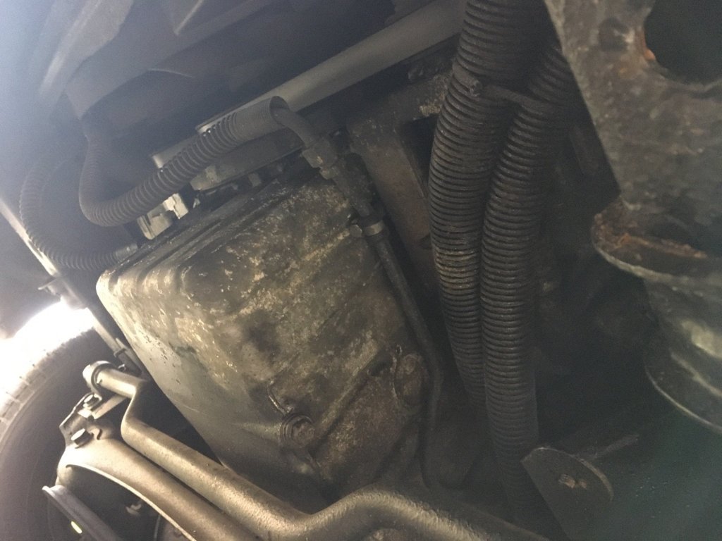 Wenn ich den aufmache, läuft die Plörre übers Blech und über den Längsträger. Sowohl Schraube als auch der Schlauch sind sehr schlecht zu erreichen. (Siehe grüner Pfeil, da steht so Blech über.)
