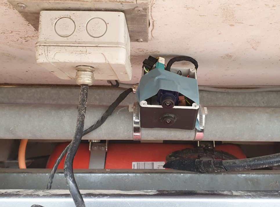 Hier mal die Einbaulage von der Kamera unter dem Aufbau, in einer IP67 AP Abzweigdose.