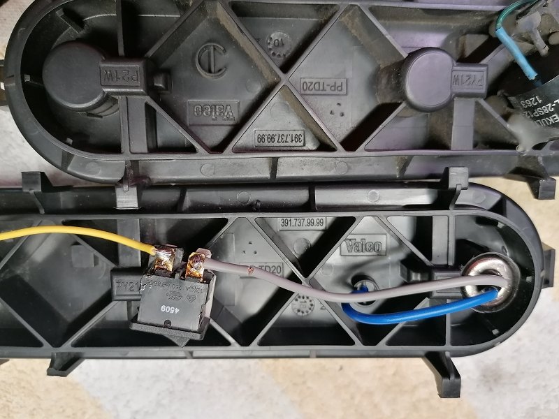 Genau genommen habe ich nichts geändert. Nur aus 10 W habe ich 2 x 5 W gemacht und die Bremsleuchte ist geblieben ( 1 x 21 W ) , nur in einer anderen Glühbirne-Art.