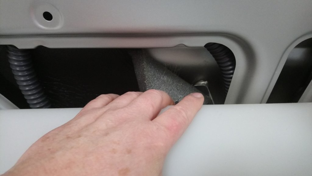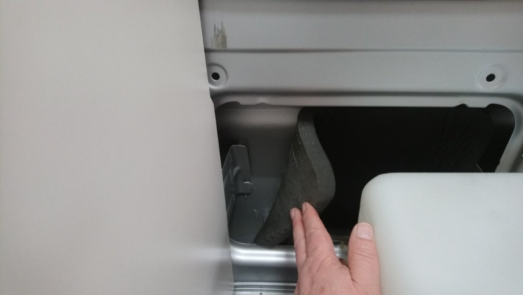 Um an den Wassertank heran zu kommen muss der Schrank ausgebaut werden und dazu müssen diese Schrauben gelöst werden.
