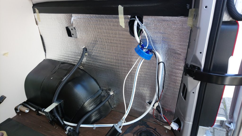Nachdem die Dämmung angebracht war habe ich noch eine dünne Isolierfolie mit Butylschnur aufgeklebt in der Hoffnung die wenige Wärme die dem Tank zugedacht ist ,nicht sofort wieder in den Hohlräumen verpuffen zu lassen.