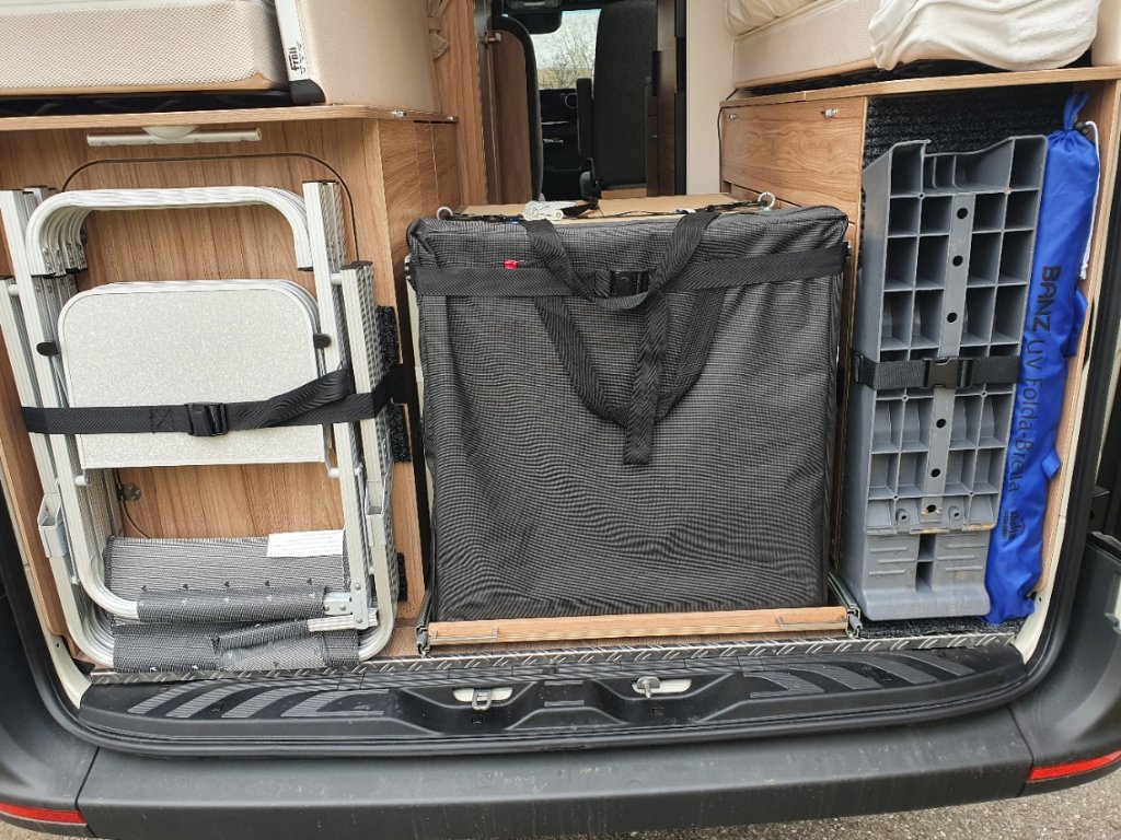 VB-Air, MQ Dämpfern, 250 Wp PV, Dachregal, AirHead, AlphaDynamics Trittstufe, ars24 Soundsystem.