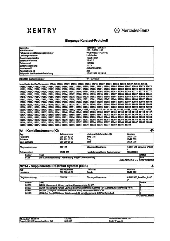 Ich habe seit geraumer Zeit die Motorkontrollleuchte brennen, ohne dass das Auto in den Notlauf geht. Diesbezüglich bin ich ganz regelkonform zu einer Mercedes-Werkstatt gefahren und habe das Auto auslesen lassen. Das mir übergebene Xentry-Protokoll habe ich euch angehangen.