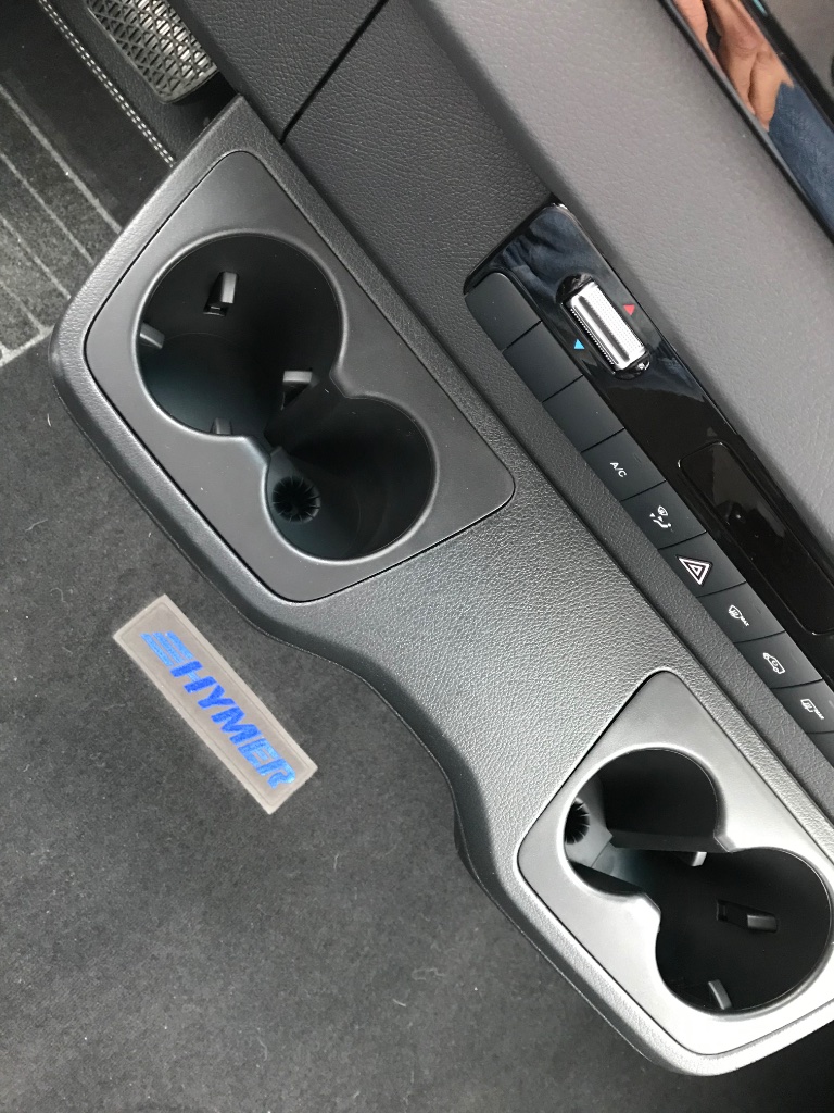Armaturenbrett oben mit Staufächern und unten mit Trinkbecherhaltern.