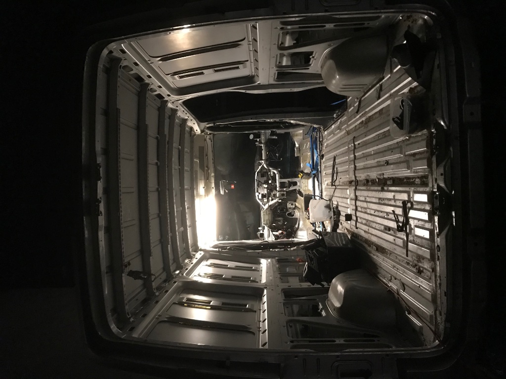 Ich habe mal angefangen die Karosserie weiter zu demontieren, das Armaturenbrett die Innenraumverkleidung, die Trennwand und die Bodenplatte sind draußen.