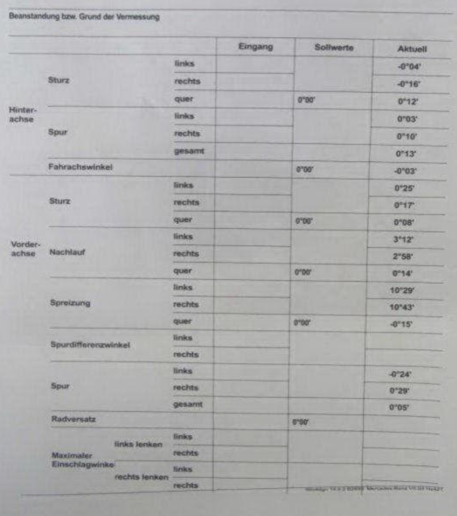 Was meint Ihr zur Spur? Kann der Querlenker und Längsträger bei den Werten verbogen sein so wie @Vanagaudi es angesprochen hat?