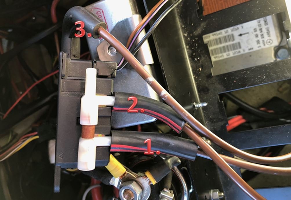2. Frage/n: a. Frage: Ist der Schlauch (braun/blau) richtig im Unterdruck-Relais? d.h. auf meinem Bild unten? (1. und 2. hatte ich getauscht ohne mir die richtige „Ausgangsstellung“ zu markieren) leider ohne Erfolg.