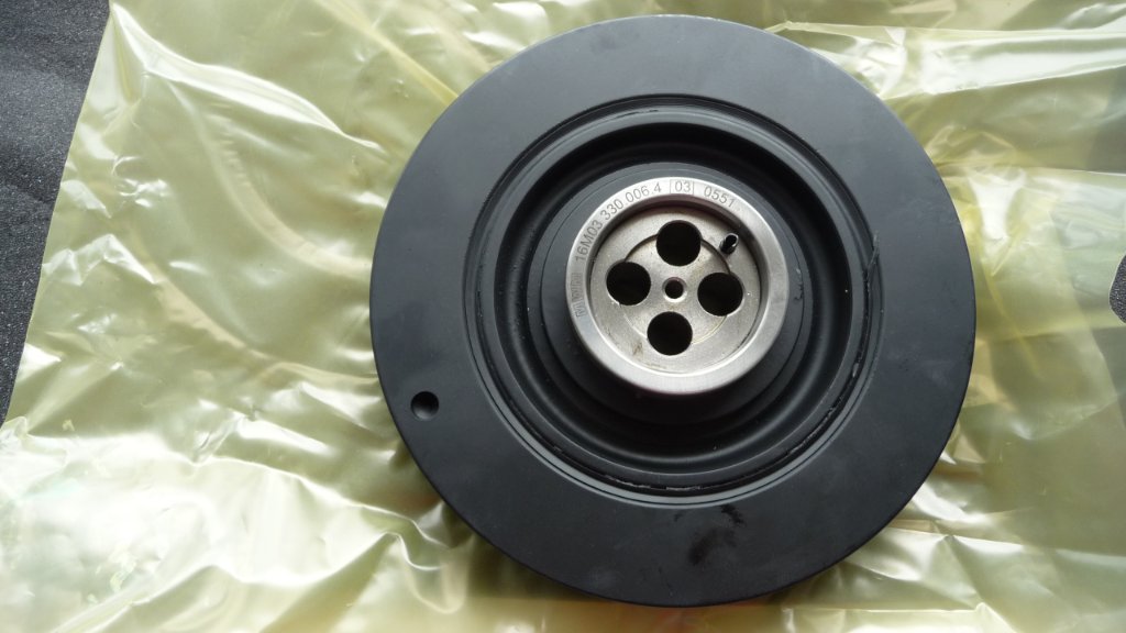 Ich vermute jetzt, aufgrund des Alters von 17 Jahren und 152000 km, das der Schwingungsdämpfer (Riemenscheibe auf der Kurbelwelle, in Gummi gelagert) einfach am Ende ist.