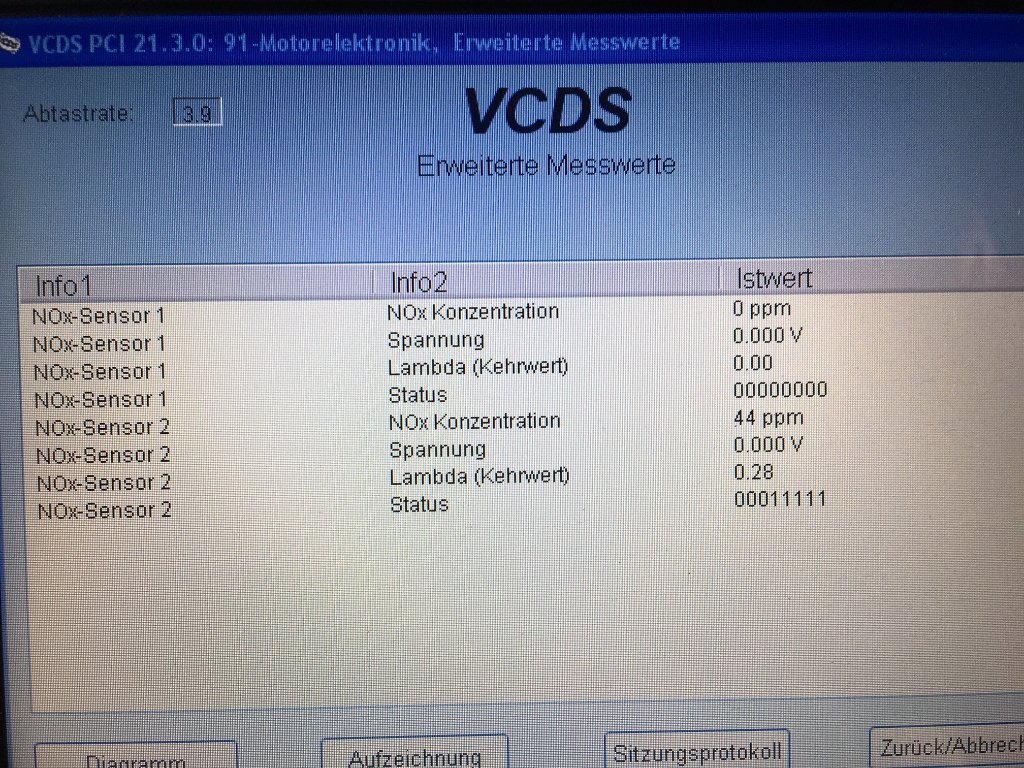Nach den Screenshot des VCDS sieht es so aus, als wenn bei dir einer der Sonden nicht arbeiten würde.