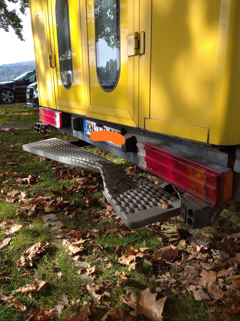 Ich würde sagen: runter mit der demolierten trittstufe und lass wie es ist. Der verzogene teil ist angesetzt, also eine rahmenverlängerung, die dazu da ist, den hinteren teil des aufbaus zu stützen. Das ist nichts sicherheitsrelevantes, also dem tüv nicht wichtig.