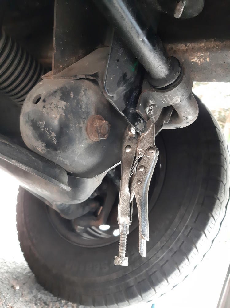 Fahrzeug beidseitig aufgebockt: Für mich bestand der Trick darin, dass ich die Schraube/Mutter der Lasche löse, dann das Rad auf der zu bearbeitenden Seite ablasse und belaste. Dadurch kommt die Stabistange etwas höher, was die Entnahme und das spätere Einfädeln der Lasche deutlich erleichtert. Lasche ab, altes Gummi raus, neues Gummi über die Stabistange, Lasche darüber gelegt und eingefädelt. Schlag mit den Gummihammer auf die Lasche so dass sie bereits weiter rumkommt. Bitte etwas mit Bedacht, dass das Gummi nicht verklemmt und beschädigt wird. Dann den restlichen Weg der Lasche per Spannzange machen und fixieren. Nun hat man beide Hände frei um Schraube und Mutter anzusetzen.