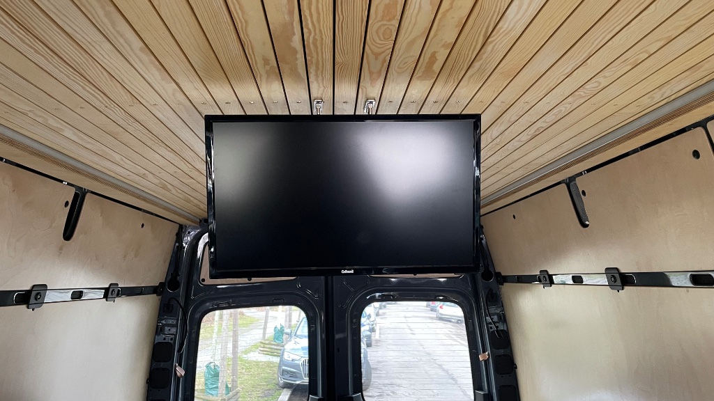 Zudem sollte die Aufhängung so angebracht sein, daß gucken sowohl von den gedrehten Sitzen wie auch vom Bett aus möglich ist.