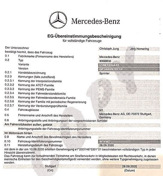 Ein VS30 Pkw 906 AC 35 mit W1V907... EZ: 2020 :!: