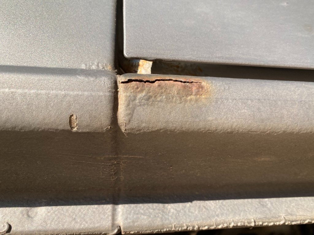 Wenn du hier bissel Gewalt anwendest, bist du wahrscheinlich durch. Wenn nicht gleich jetzt, dann nächstes Jahr. An der Naht sieht man es noch nicht so, aber dort ist auch schon schlimm der Gammel drin. Es geht fast immer an solchen Nähten los, weil die nicht zueinander starr sind (deswegen die Dichtmasse...) und trotz Dichtmasse und Schweißpunkten Bewegung haben.