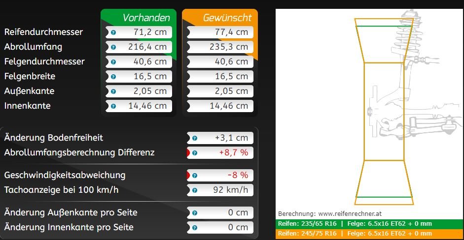 245/75 R16 könnte aber tatsächlich schon kritisch sein, erst Recht wenn auch mal was an den Haken soll.