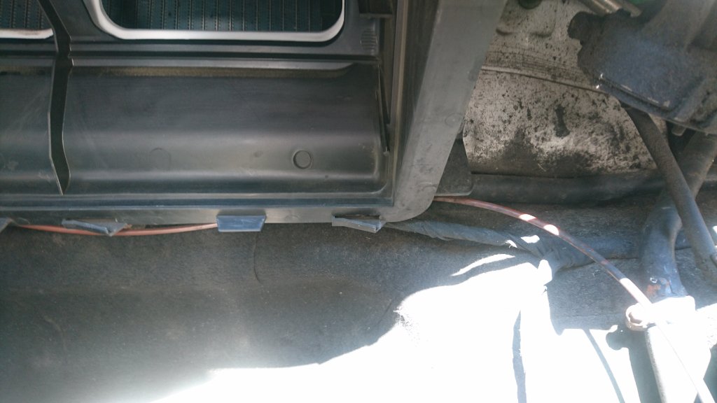 entdeckt, das unter dem Bodenbelag alles naß - vom Kühlmittel (blau) ist.