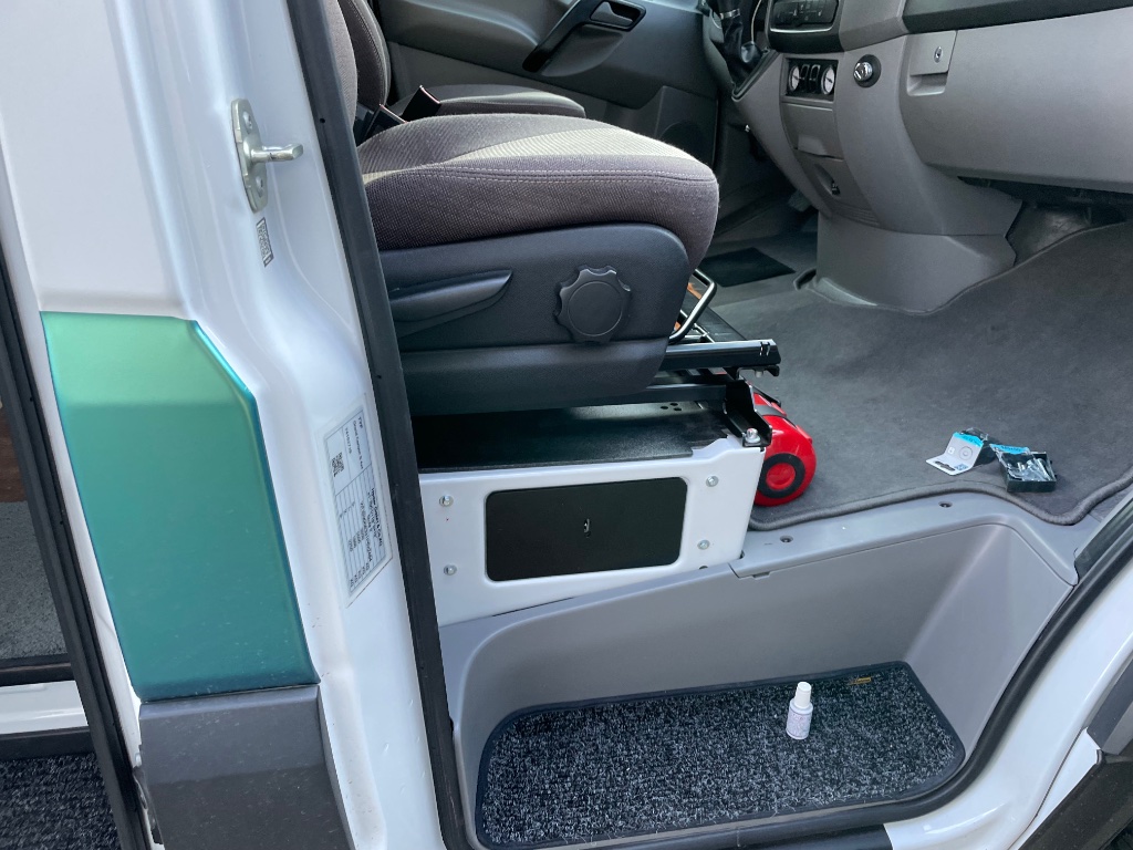 Im Sprinter bietet sich dafür die Kiste unter dem Beifahrersitz an.