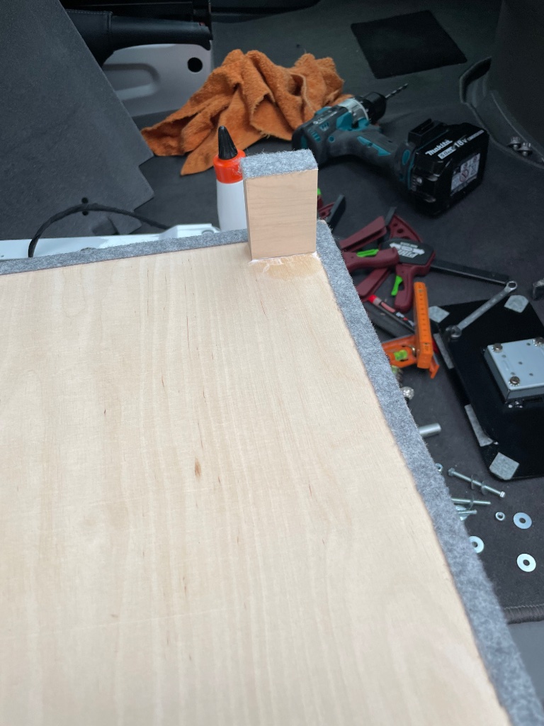 Nachdem ich die vorderen Seitenverkleidungen bereits mit Filz bezogen habe, habe ich mich heute an das hintere rechte Teil herangewagt und nach dem zweiten Versuch hat es sogar geklappt. Jetzt muss ich noch die linke hintere Verkleidung beziehen, wobei die nochmals eine Nummer schwieriger sein wird. Die Mühe hat sich aber gelohnt.