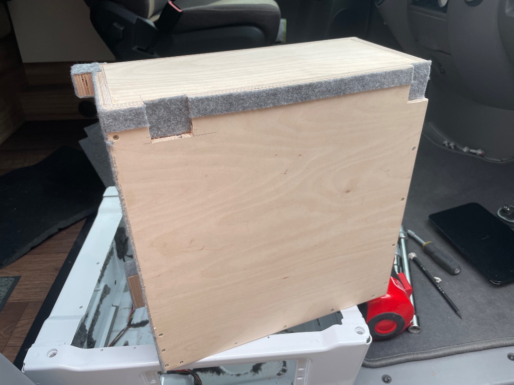 Ganz so einfach war das nicht, da die Sitzkiste geometrisch eine Herausforderung ist, wenn man den Platz maximal ausnutzen möchte.