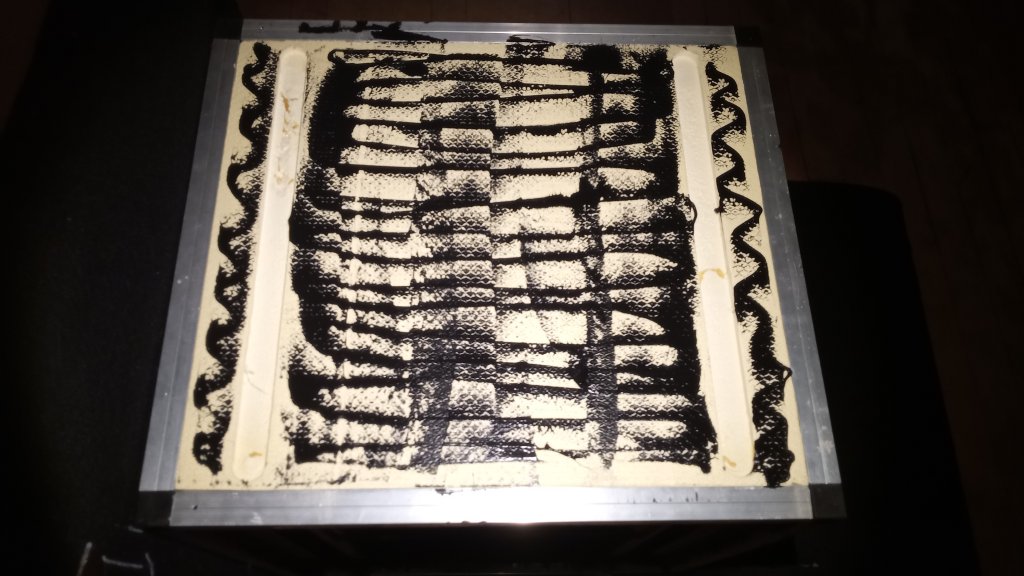 Schaum aus Iso-Matten und 20er Dacron-Watte. Bezug wie gehabt in schwarzem Leder und grauem Kunstleder. Befestigungsteile sind bestellt und sollten hoffentlich bald eintreffen.